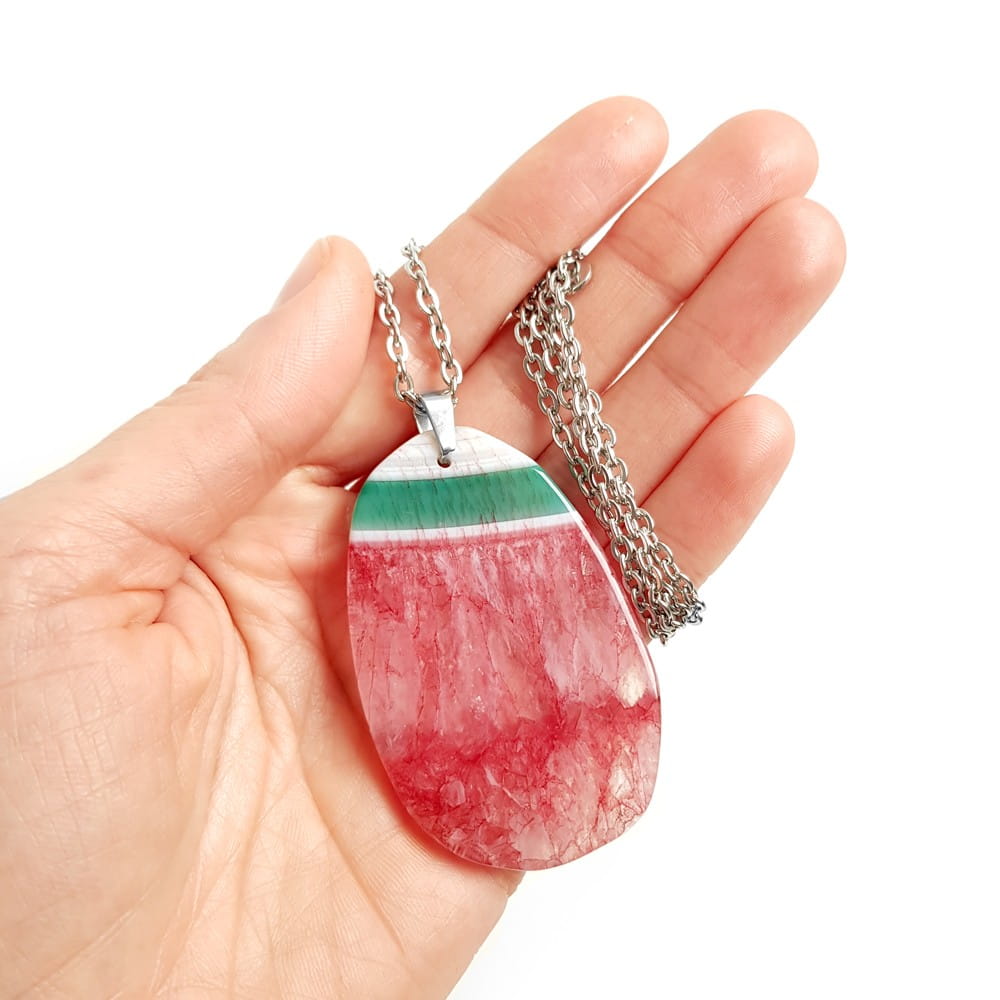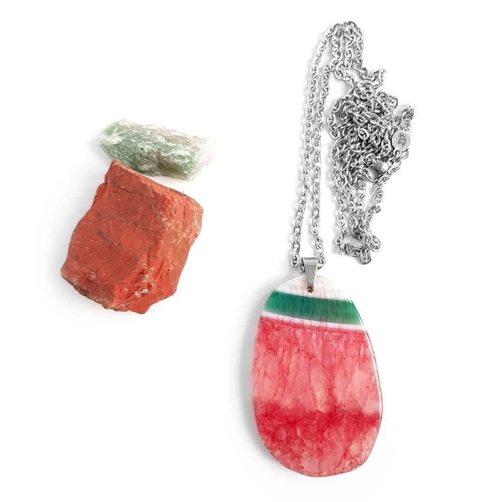 Naszyjnik unikat agat z kwarcem truskawkowo-zielony plaster stal chirurgiczna