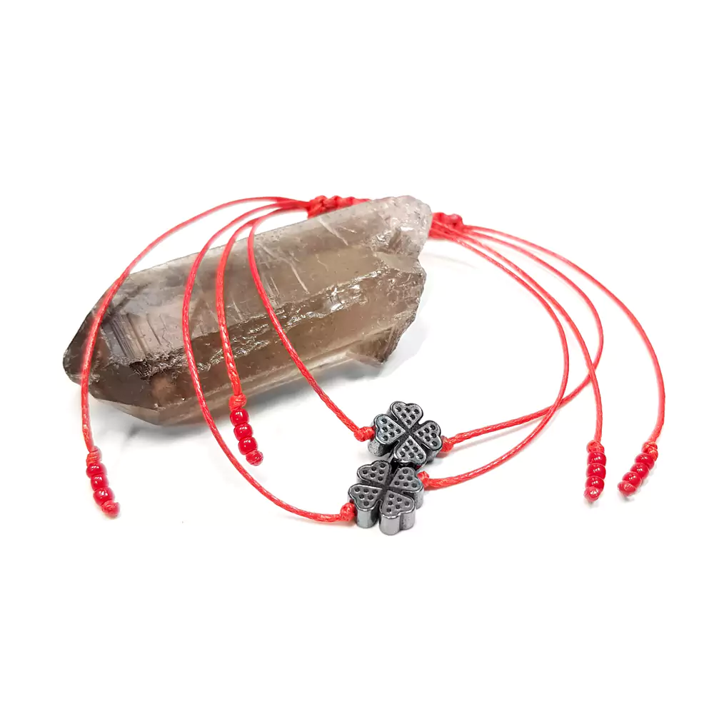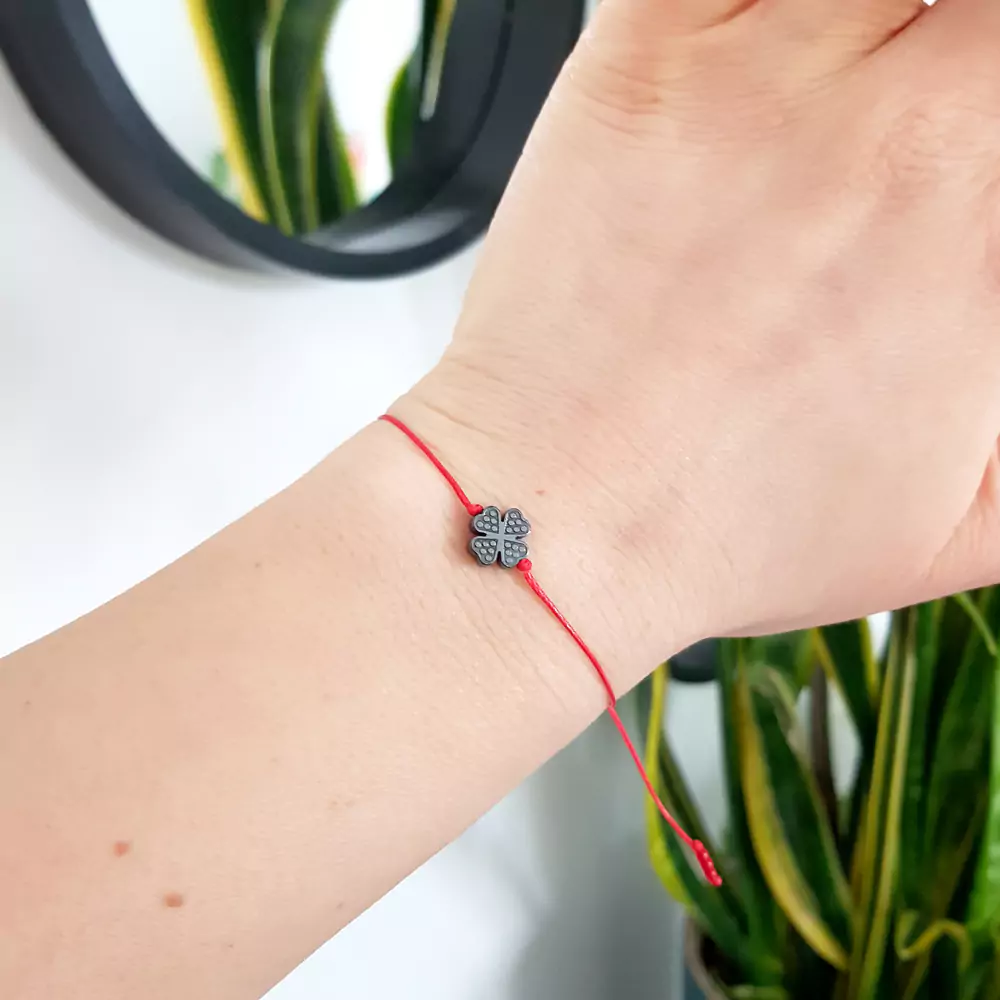 WishYouLuck koniczynka grafitowy hematyt bransoletka szczęścia na czerwonym sznurku