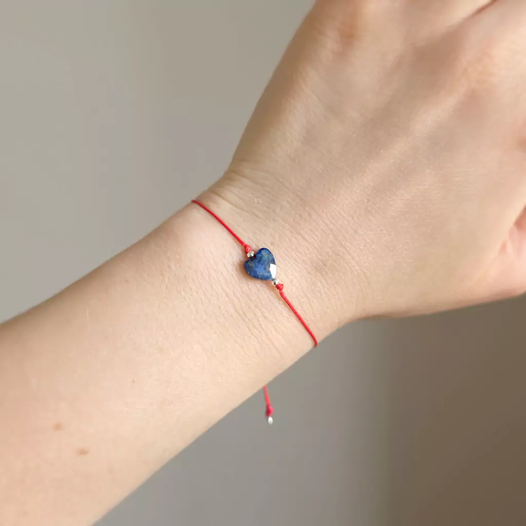 WishYouLuck lapis lazuli serce i srebro p.925 bransoletka szczęścia na czerwonym sznurku