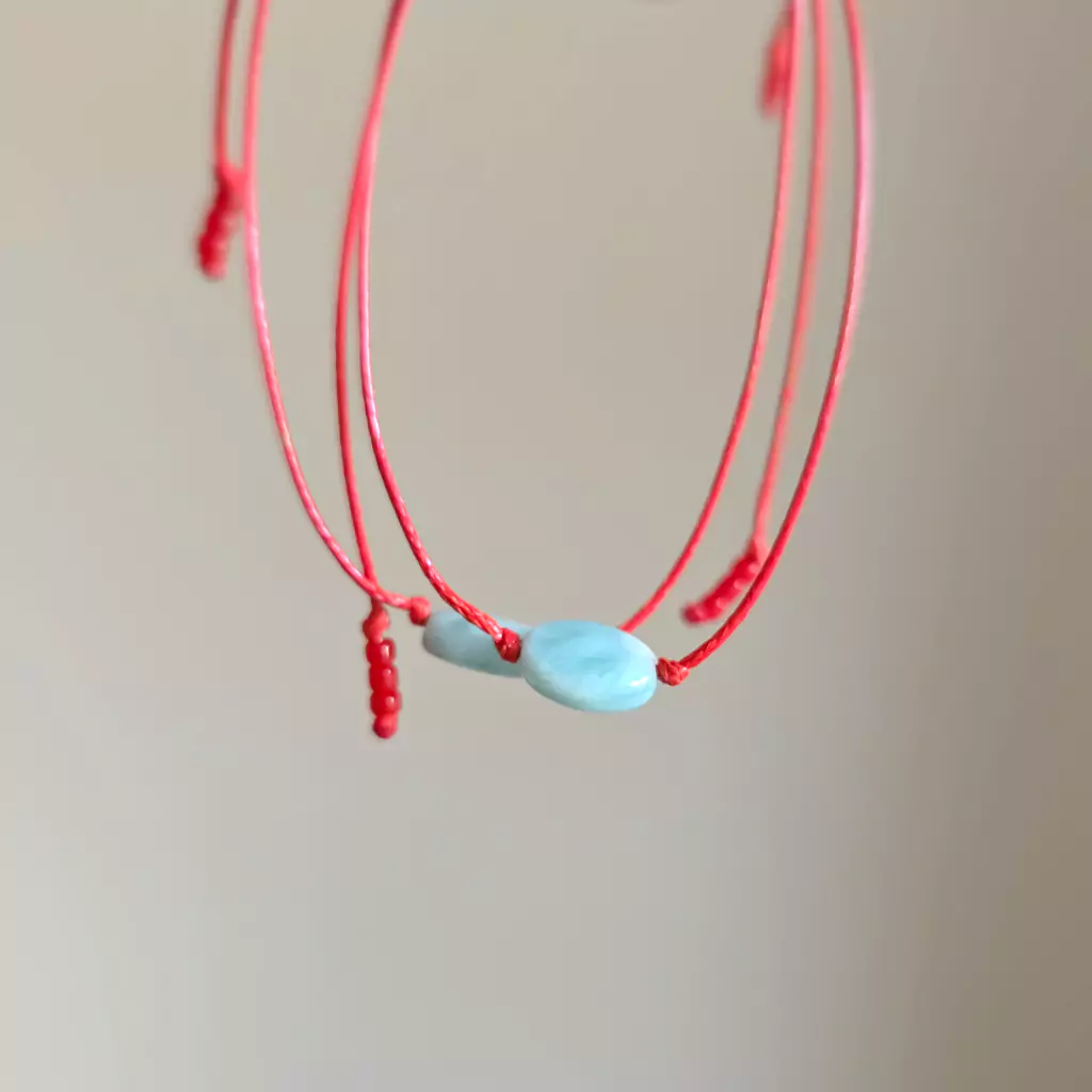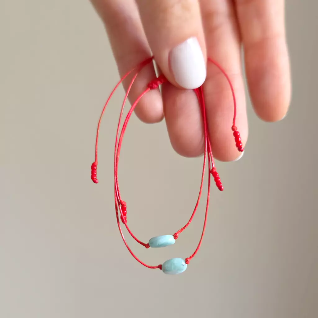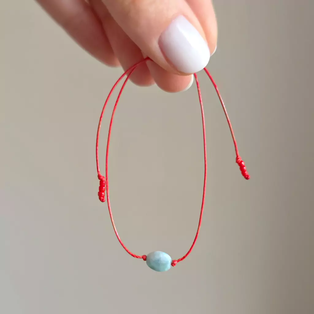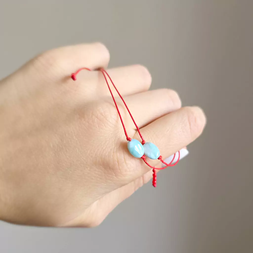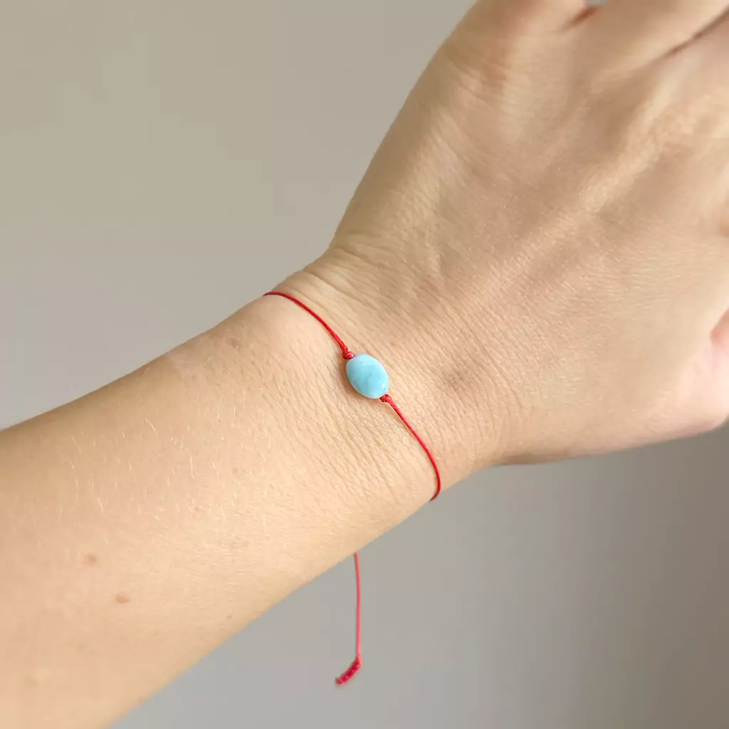 WishYouLuck larimar pastylka bransoletka szczęścia na czerwonym sznurku