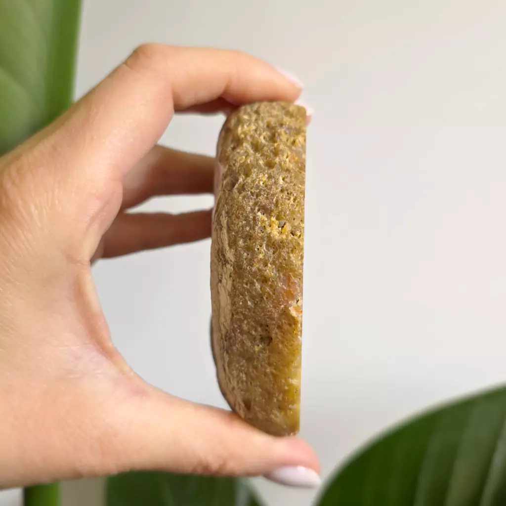 Energetyczny agat z serca Sumatry, zachwycający ciepłą paletą odcieni pomarańczu i żółci. Ten wyjątkowy kamień emanuje radością, optymizmem i wewnętrznym światłem. Wspiera witalność, wzmacnia pewność siebie i pomaga odzyskać życiową równowagę. Jego wibracja pobudza kreatywność, dodaje odwagi i ugruntowuje w tu i teraz. Naturalne dzieło ziemi – idealne do pracy z czakrą sakralną i słoneczną.