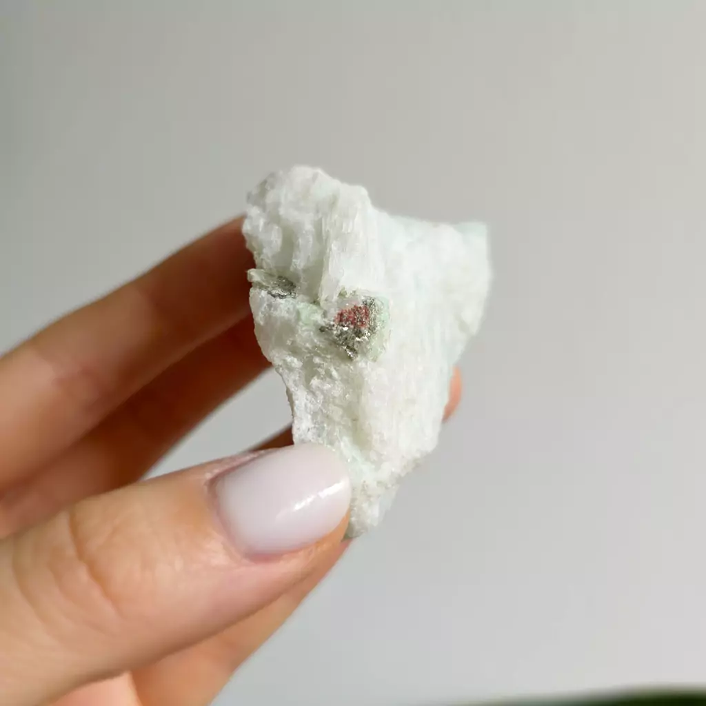 Amazonit z rubelitem i fuchsytem - surowa bryłka o wadze 83 g.
