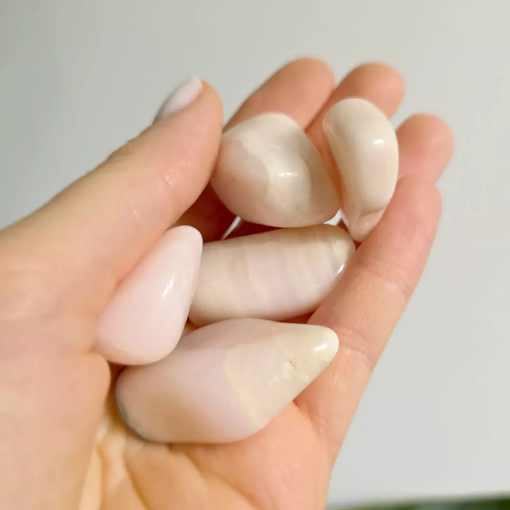 Delikatne otoczaki aragonitu w odcieniach różu i brzoskwini emanują ciepłem, spokojem i kobiecą łagodnością. To kamienie ukojenia emocji, wsparcia w stresie i budowania wewnętrznej harmonii. Pomagają wrócić do siebie, wyciszyć chaos myśli i poczuć się bezpiecznie. Idealne do noszenia przy sobie, jako amulety codziennej troski i czułości dla duszy.