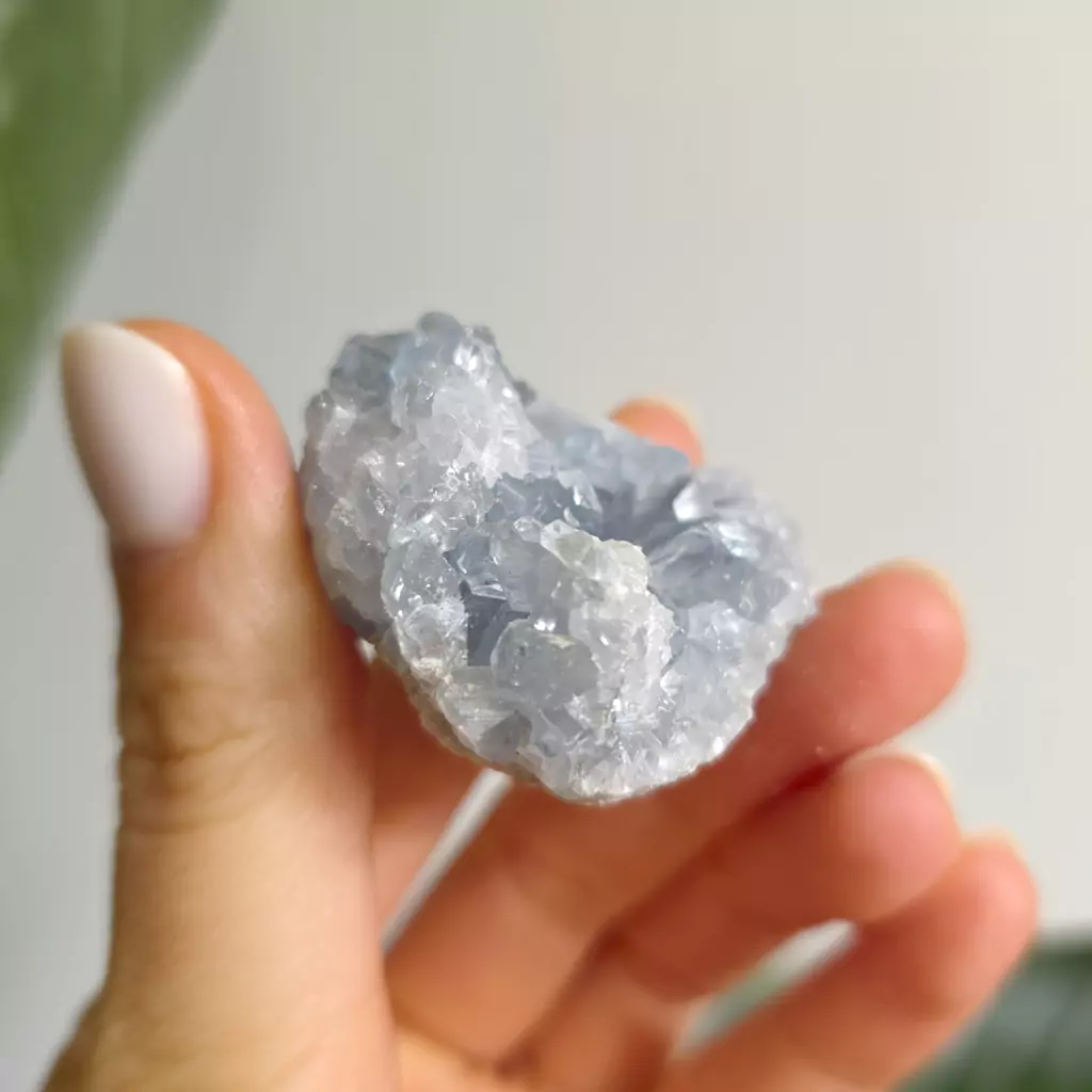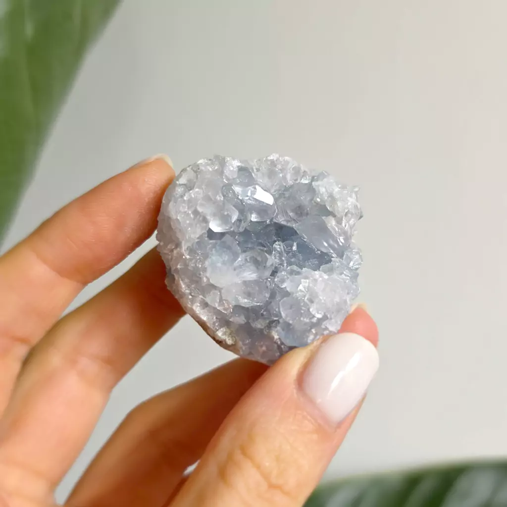 Celestyn emanuje delikatną, uzdrawiającą energią, wibrującą z czakrą gardła, trzeciego oka i korony. Celestyn pobudza intuicję, myślenie i skupienie w czasie medytacji lub modlitwy. Pobudza duchową siłę, koi, uspokaja, uczy uważności w życiu.