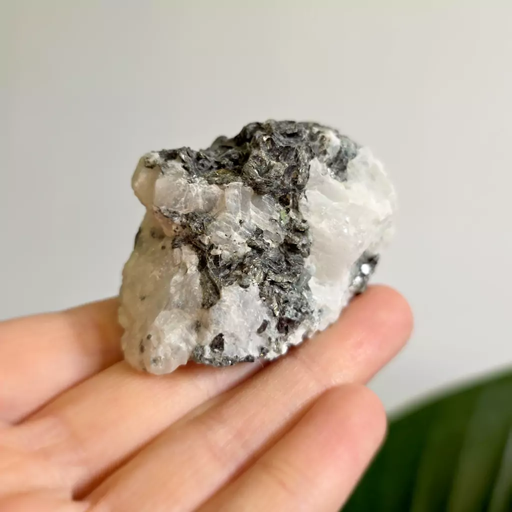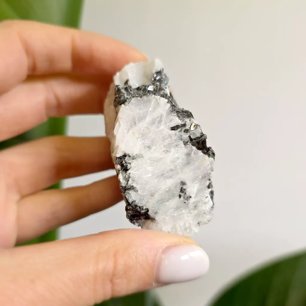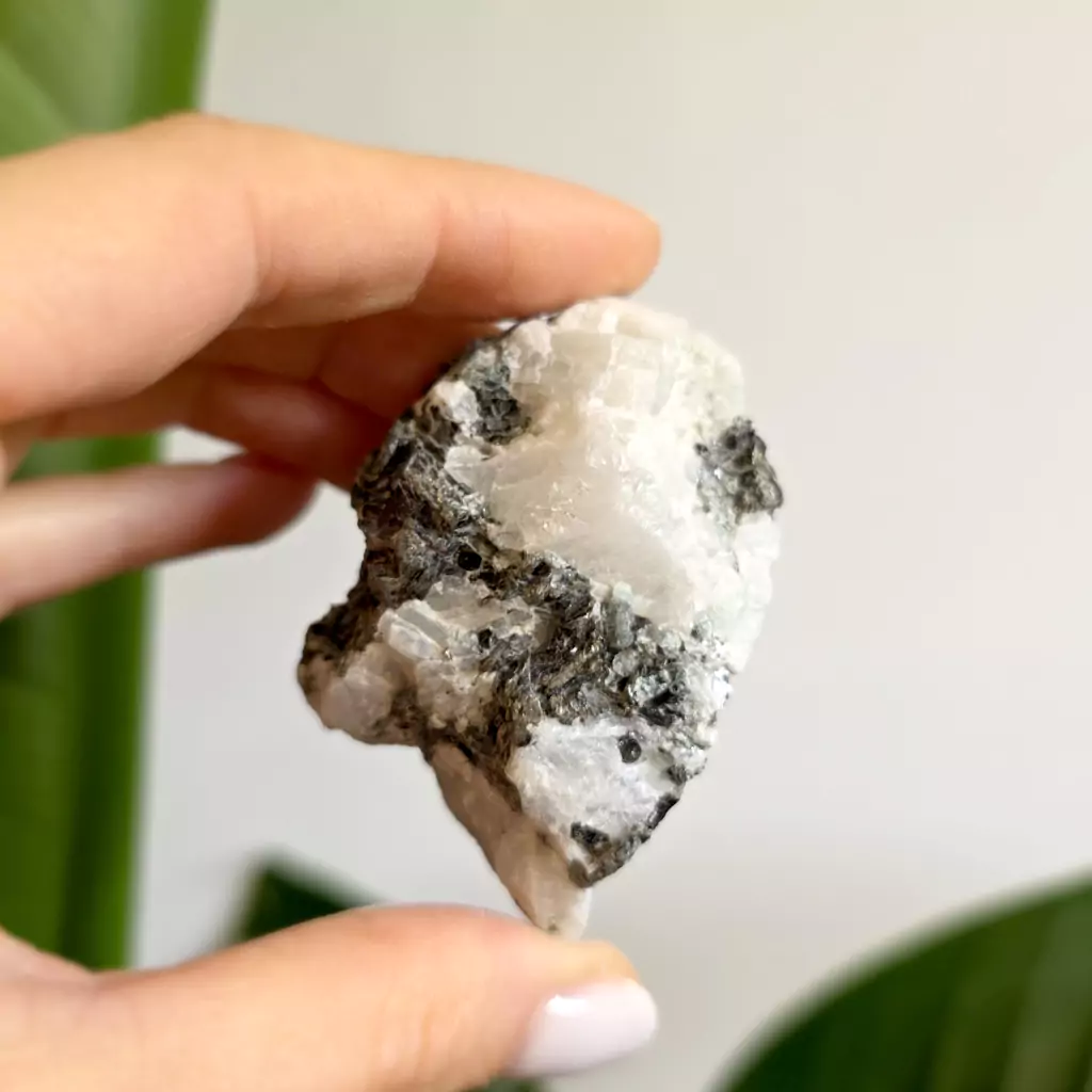 Kamień księżycowy z czarnym turmalinem - bryłka surowa - 81 g