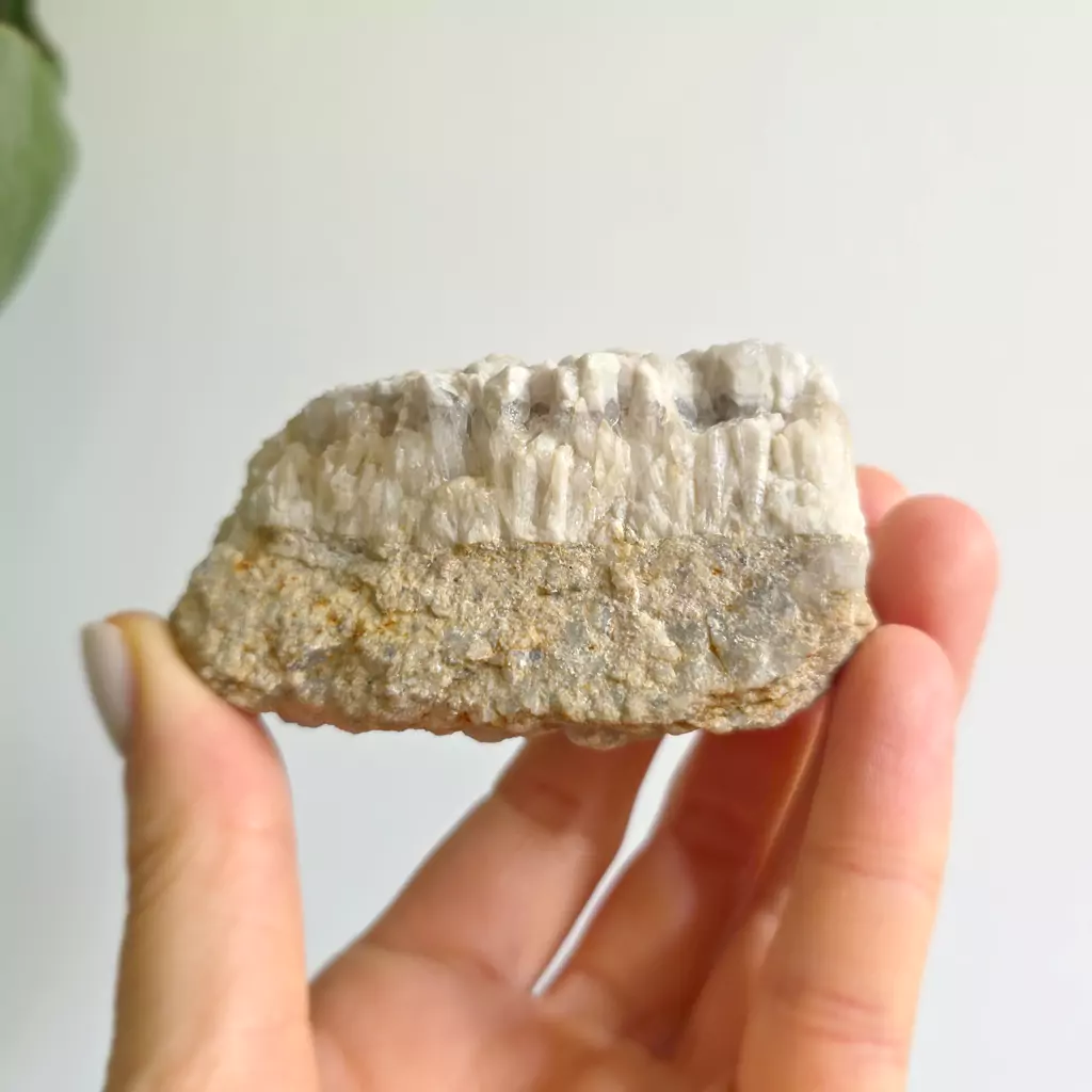Delikatna, surowa piękność natury – kryształy kwarcu w odcieniach bieli i szarości, jak zamglone światło poranka. Ta szczotka niesie ze sobą czystą energię oczyszczenia, spokoju i harmonii. Wspiera wyciszenie umysłu, klarowność myśli i łączność z wewnętrzną mądrością. Idealna do pracy z intencją, medytacją lub jako energetyczna dekoracja przestrzeni. Wydobyta z serca Pogórza Izerskiego – niesie moc naszej rodzimej ziemi.
