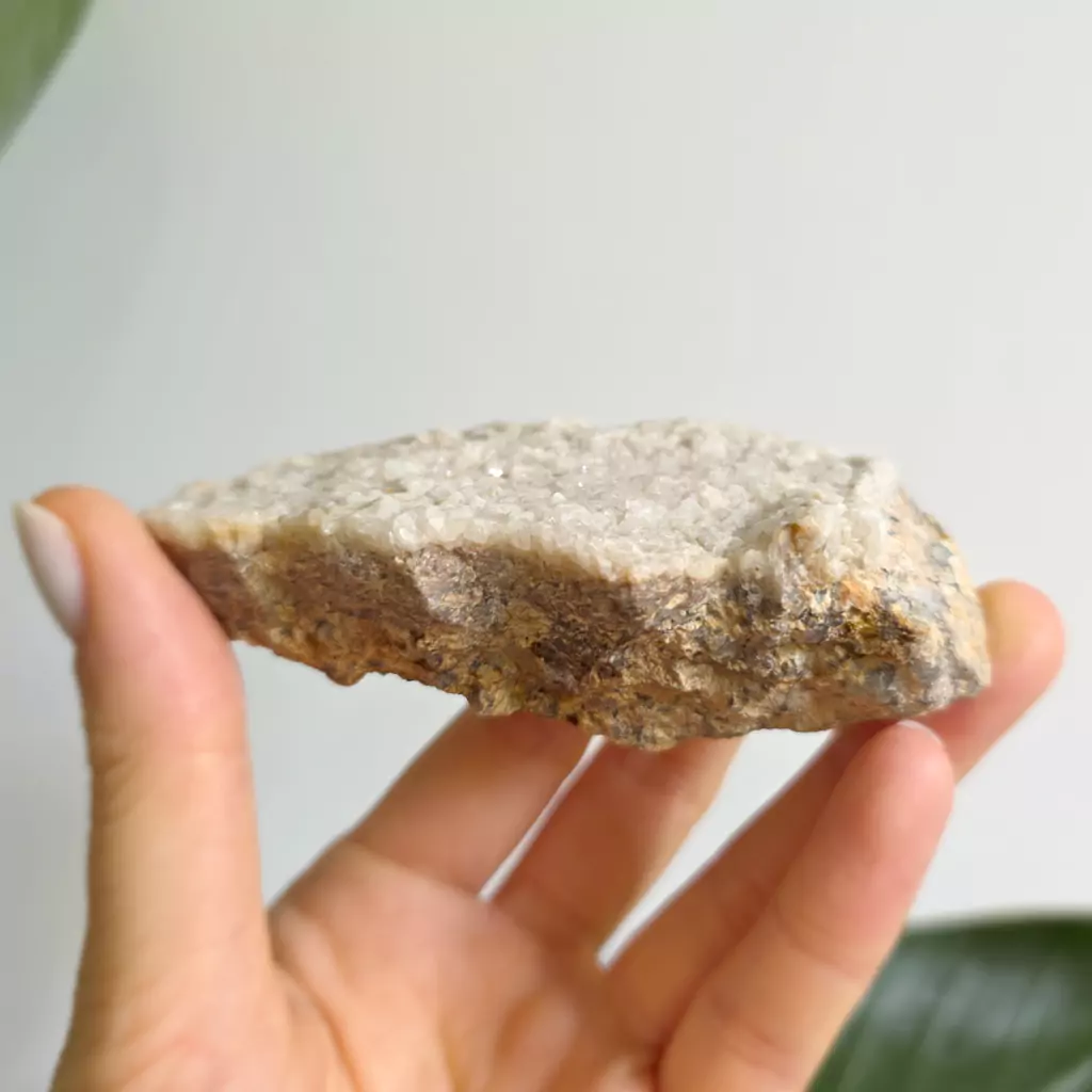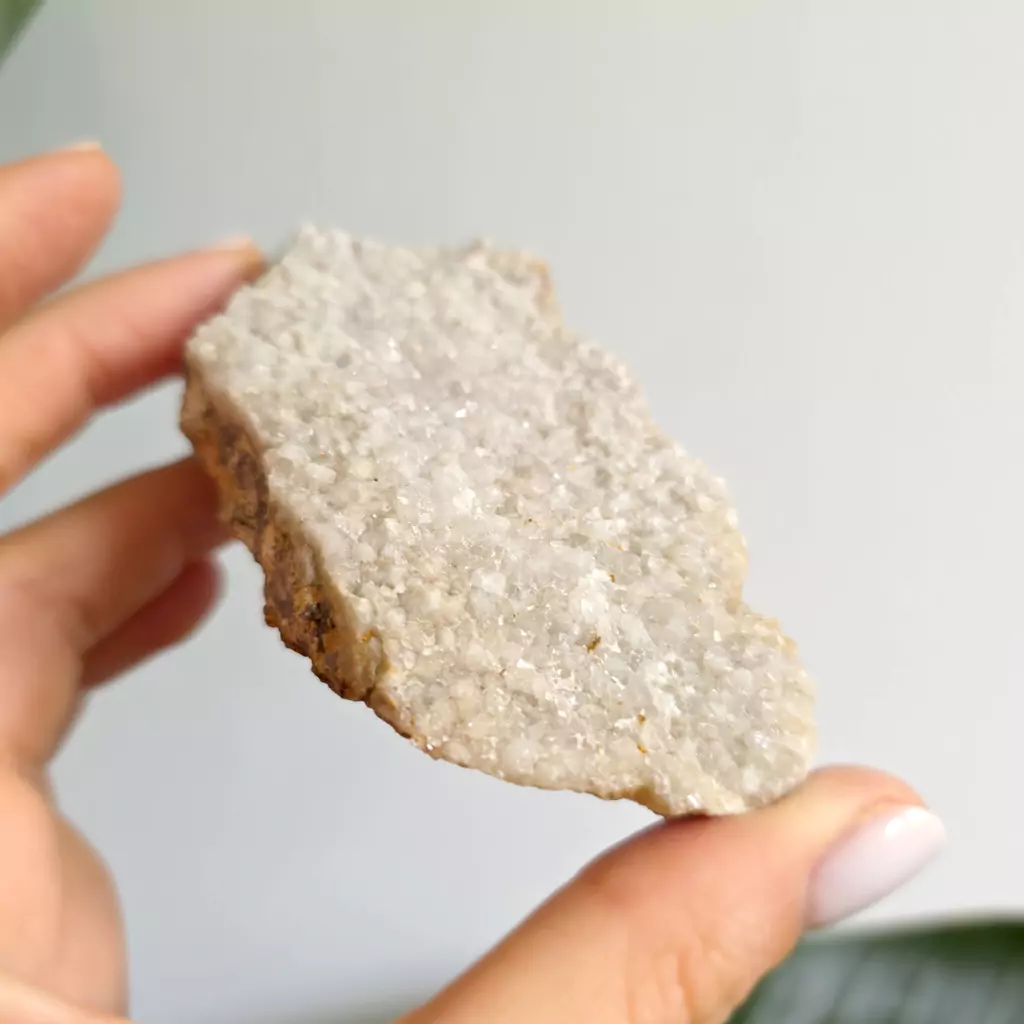 Delikatna, surowa piękność natury – kryształy kwarcu w odcieniach bieli i szarości, jak zamglone światło poranka. Ta szczotka niesie ze sobą czystą energię oczyszczenia, spokoju i harmonii. Wspiera wyciszenie umysłu, klarowność myśli i łączność z wewnętrzną mądrością. Idealna do pracy z intencją, medytacją lub jako energetyczna dekoracja przestrzeni. Wydobyta z serca Pogórza Izerskiego – niesie moc naszej rodzimej ziemi.