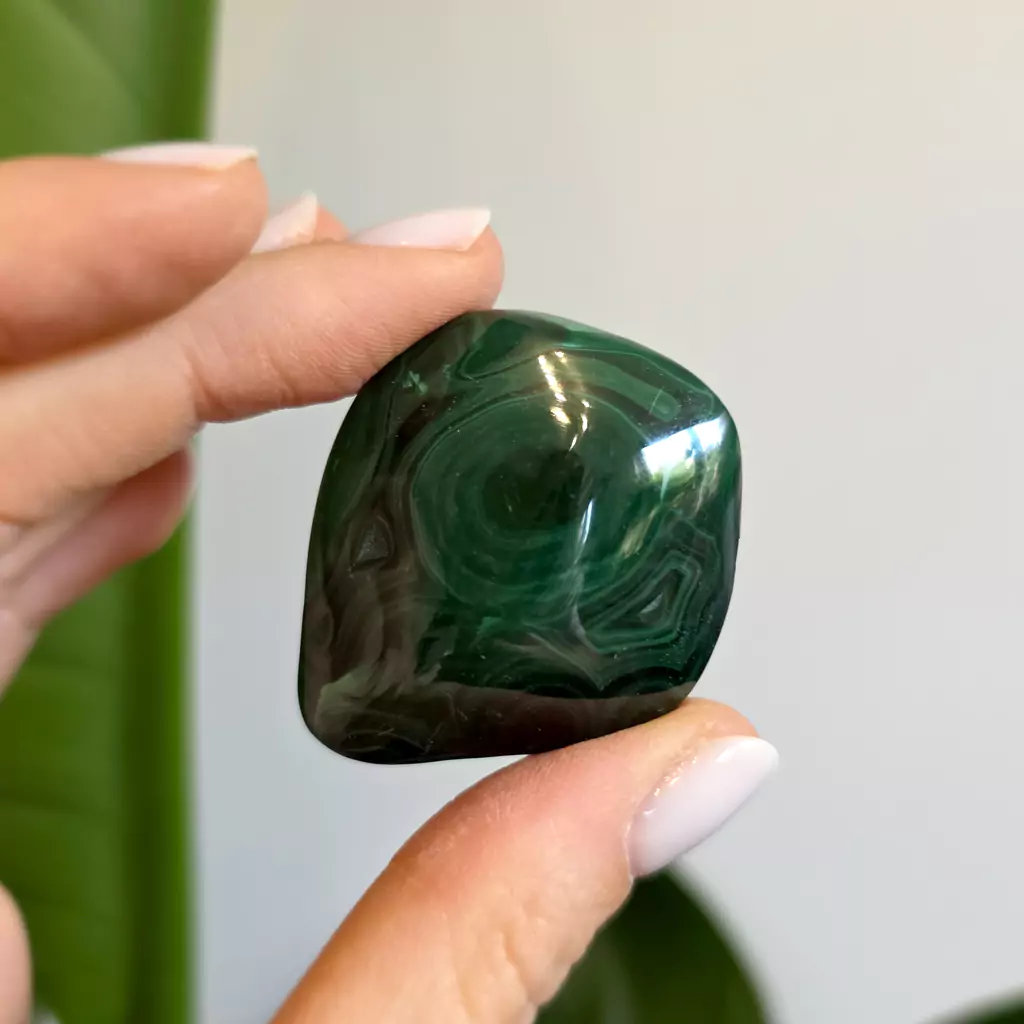 Malachit jest silnym kamieniem ochronnym, odpiera negatywne energie, chroni przez wampirami energetycznymi. Otwiera serce na miłość. Zachęca do podejmowania ryzyka. Uczy brania odpowiedzialności za własne czyny. Pomaga przechodzić przez życiowe trudności, umożliwia wyrzucenie z siebie wszelkich żali, lęków, trudności.