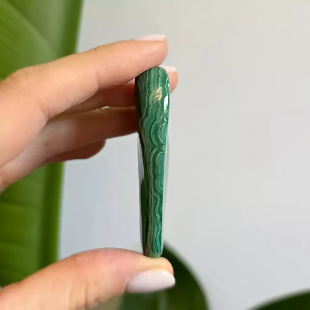 Malachit jest silnym kamieniem ochronnym, odpiera negatywne energie, chroni przez wampirami energetycznymi. Otwiera serce na miłość. Zachęca do podejmowania ryzyka. Uczy brania odpowiedzialności za własne czyny. Pomaga przechodzić przez życiowe trudności, umożliwia wyrzucenie z siebie wszelkich żali, lęków, trudności.