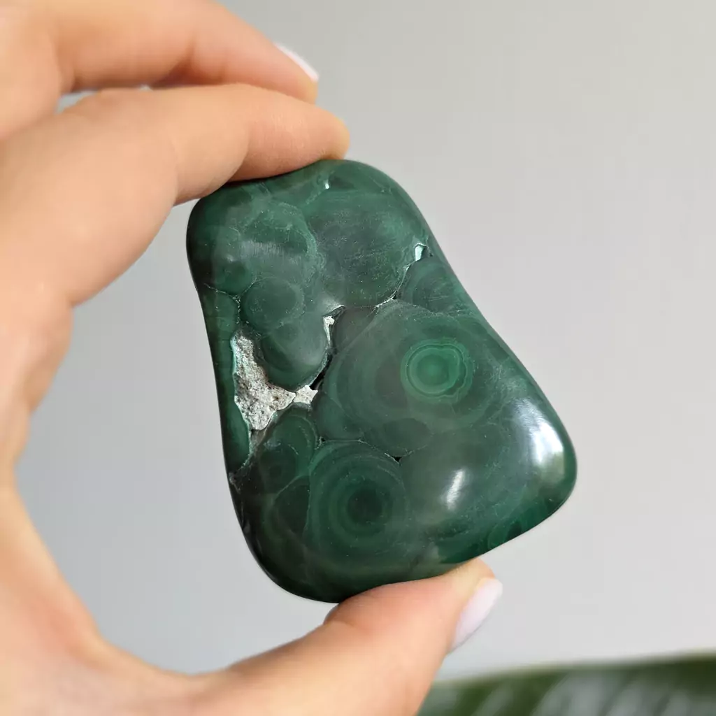 Malachit jest silnym kamieniem ochronnym, odpiera negatywne energie, chroni przez wampirami energetycznymi. Otwiera serce na miłość. Zachęca do podejmowania ryzyka. Uczy brania odpowiedzialności za własne czyny. Pomaga przechodzić przez życiowe trudności, umożliwia wyrzucenie z siebie wszelkich żali, lęków, trudności.