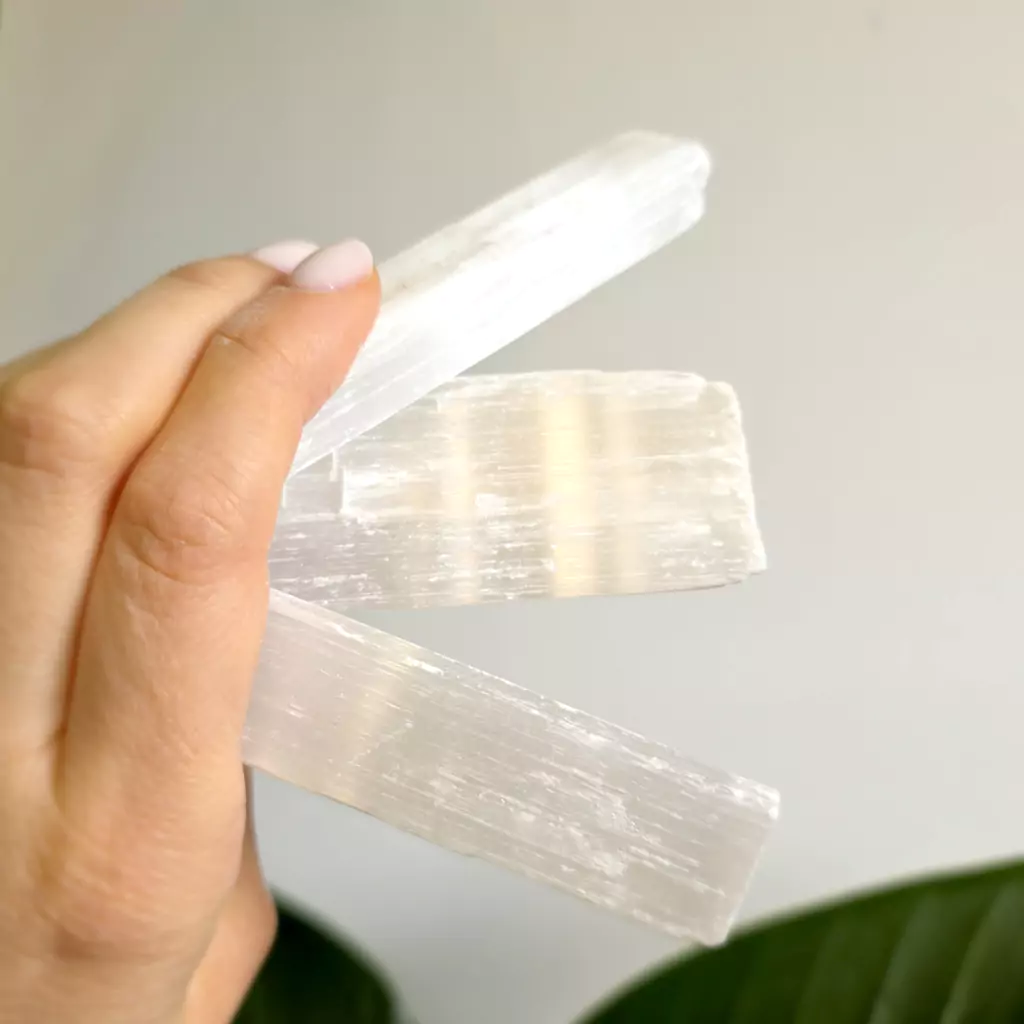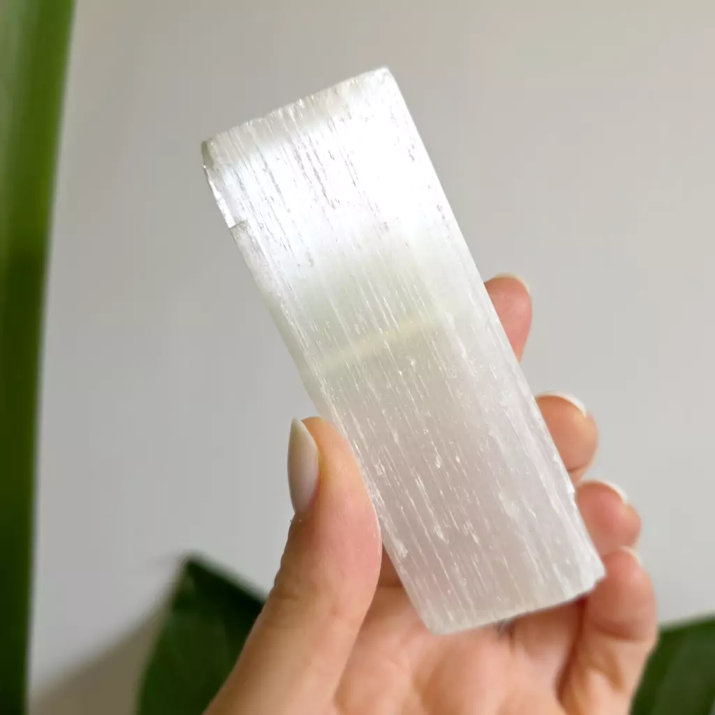 Selenit przynosi jasność myślenia. Otwiera nas na wyższe poziomy świadomości. Wspiera głęboką medytację. Pomaga przebaczać, wprowadza do życia oczyszczenie i spokój.