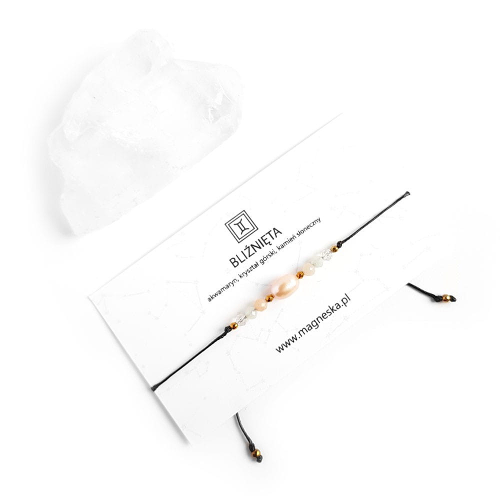 Bransoletka akwamaryn, kryształ górski, kamień słoneczny i perła Zodiac Bliźnięta